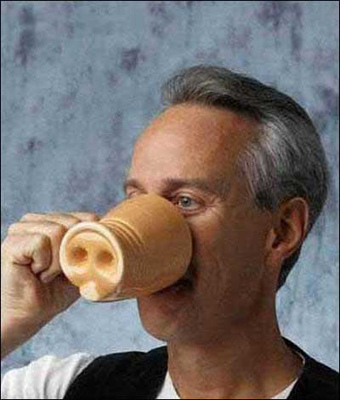 什麼叫「在結構中」?結構指的是一事一物的連結關係,拿文章開頭的圖案為例,這個畫面在一般情況下,就是「一個人在喝水」。但藝術家刻意將這個人在喝水的杯底做了一個豬鼻的造型,使杯子看起來就像是這個人的鼻子一樣,這個出人意表的安排使我們發笑。